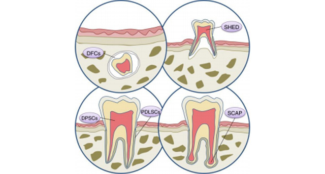 从乳牙或恒牙及其牙周组织中提取的一类干细胞,称为牙源性干细胞。牙源性干细胞经过诱导之后可以分化为成骨细胞、成软骨细胞、成牙本质细胞、成脂细胞、成神经细胞和成内皮细胞。