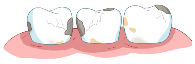 啃硬东西时牙齿崩了一小块,或边缘有不明缺损,哪怕不疼也要补。缺损处失去保护层,细菌容易侵入,还会越坏越大。